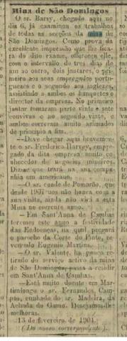 Noticias da Mina-18 de Fevereiro 1904