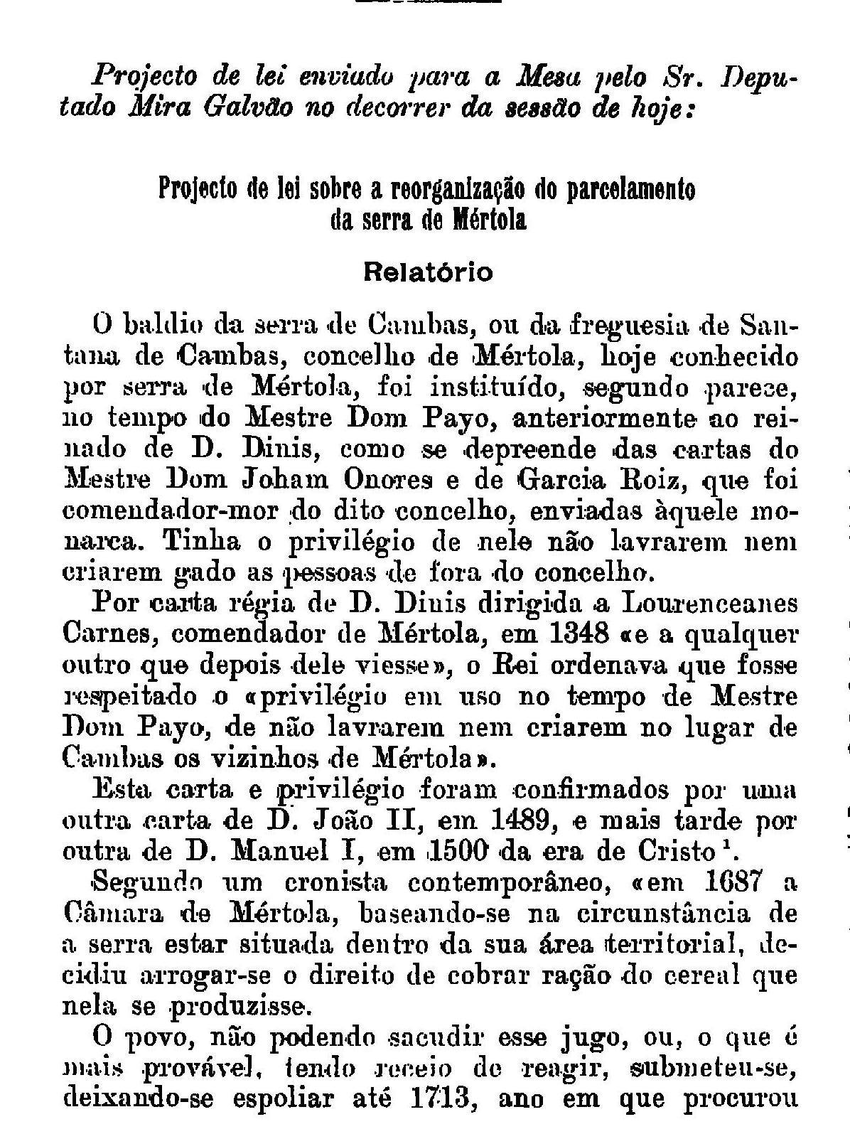 Projecto de lei sobre a reorganização do parcelamento da serra de Mértola