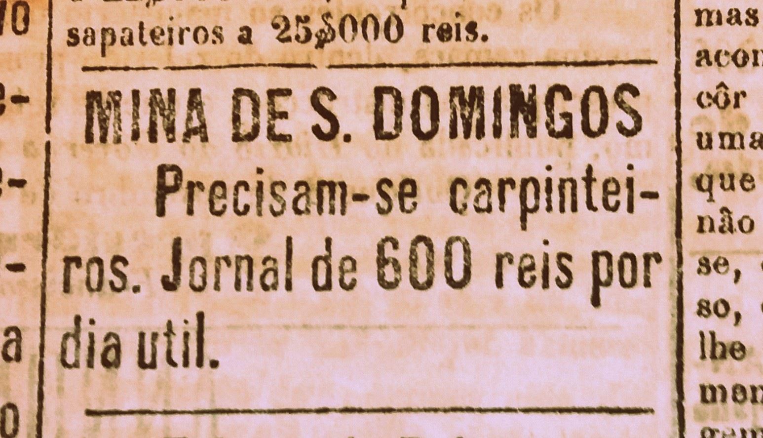 Precisam-se carpinteiros. Jornal de 600 reis por dia útil.