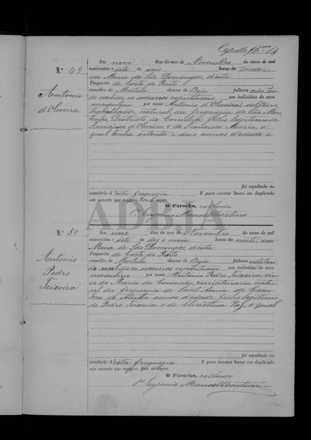 Acaba de chegar ao nosso conhecimento a noticia de haver fallecido na Mina de S. Domingos o nosso antigo correspondente n'aquella localidade, sr. Antonio Pedro Teixeira, um pobre e inoffensivo velhote, cujo maior praser consistia em noticiar nos jornaes todos os factos, por mais insignificantes que fossem, passados na região onde vivia, abstendo-se sempre, todavia, de quaesquer referencias que porventura podessem melindrar ainda as pessoas menos suas affeiçoadas.