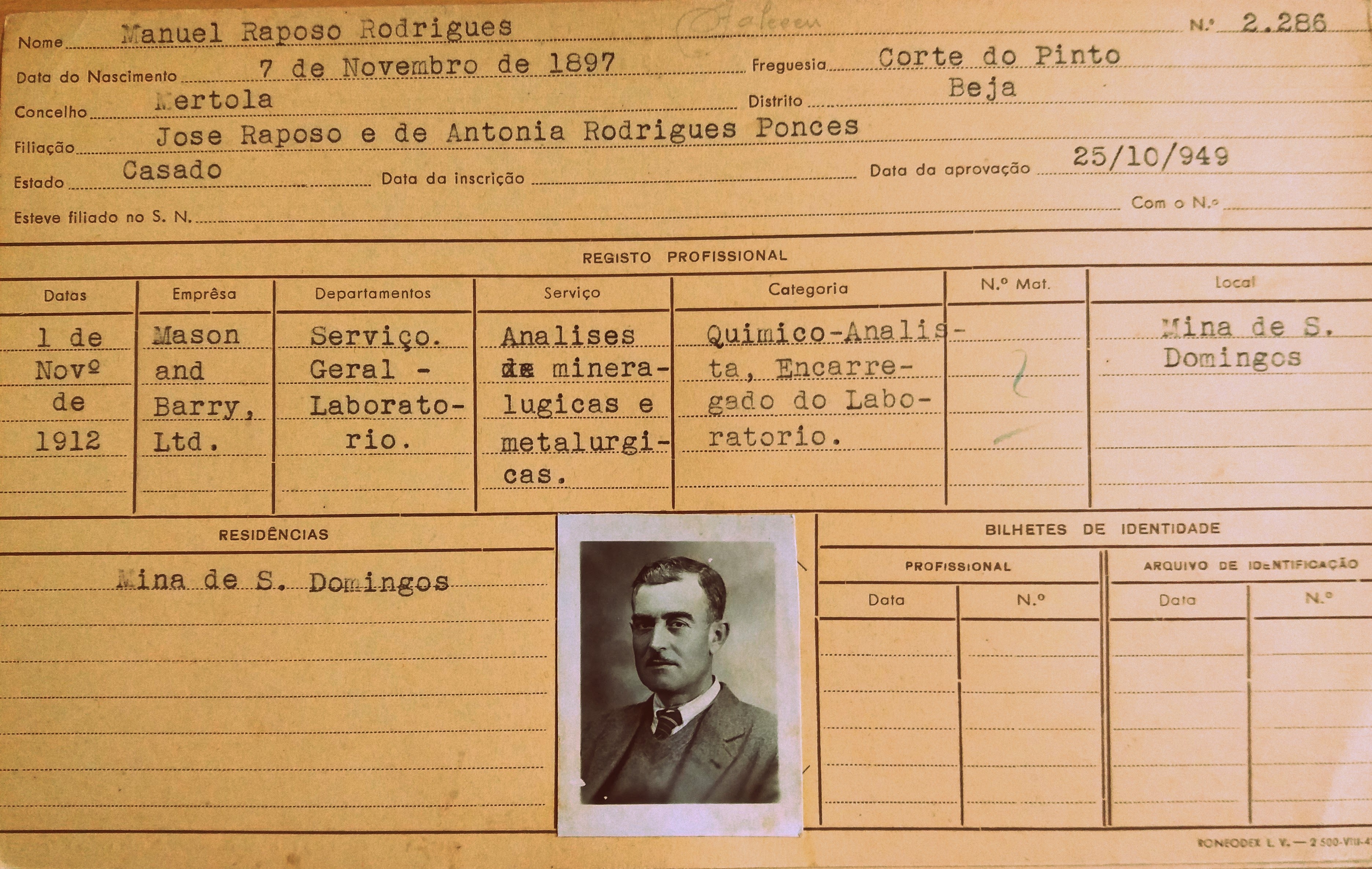 Organograma de 1930 como Adjunto Quimico. Passou a Encarregado do Laboratório