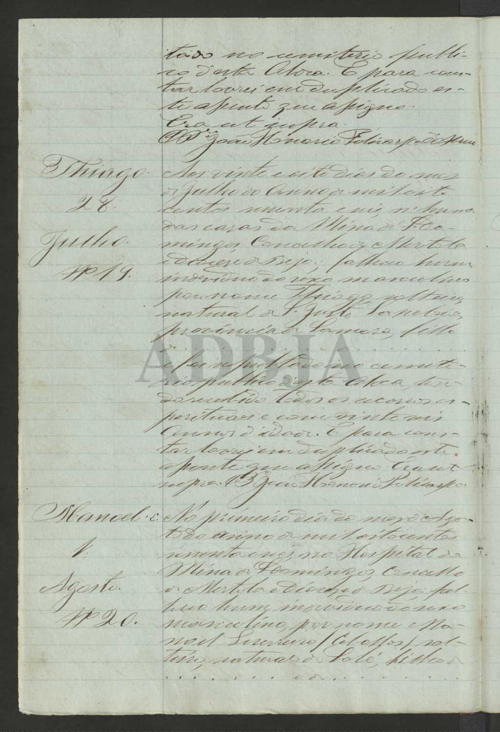 Nome do Pai: ignora-se Nome da Mãe: ignora-se Data de Nascimento: 1840-??-??Residência - Localidade: Mina de São DomingosData de Falecimento: 1866-07-28Local de Falecimento: Mina de São DomingosLocal da Sepultura: Cemitério de Corte do PintoInformação Pessoal: Biografia Assento de Óbito: