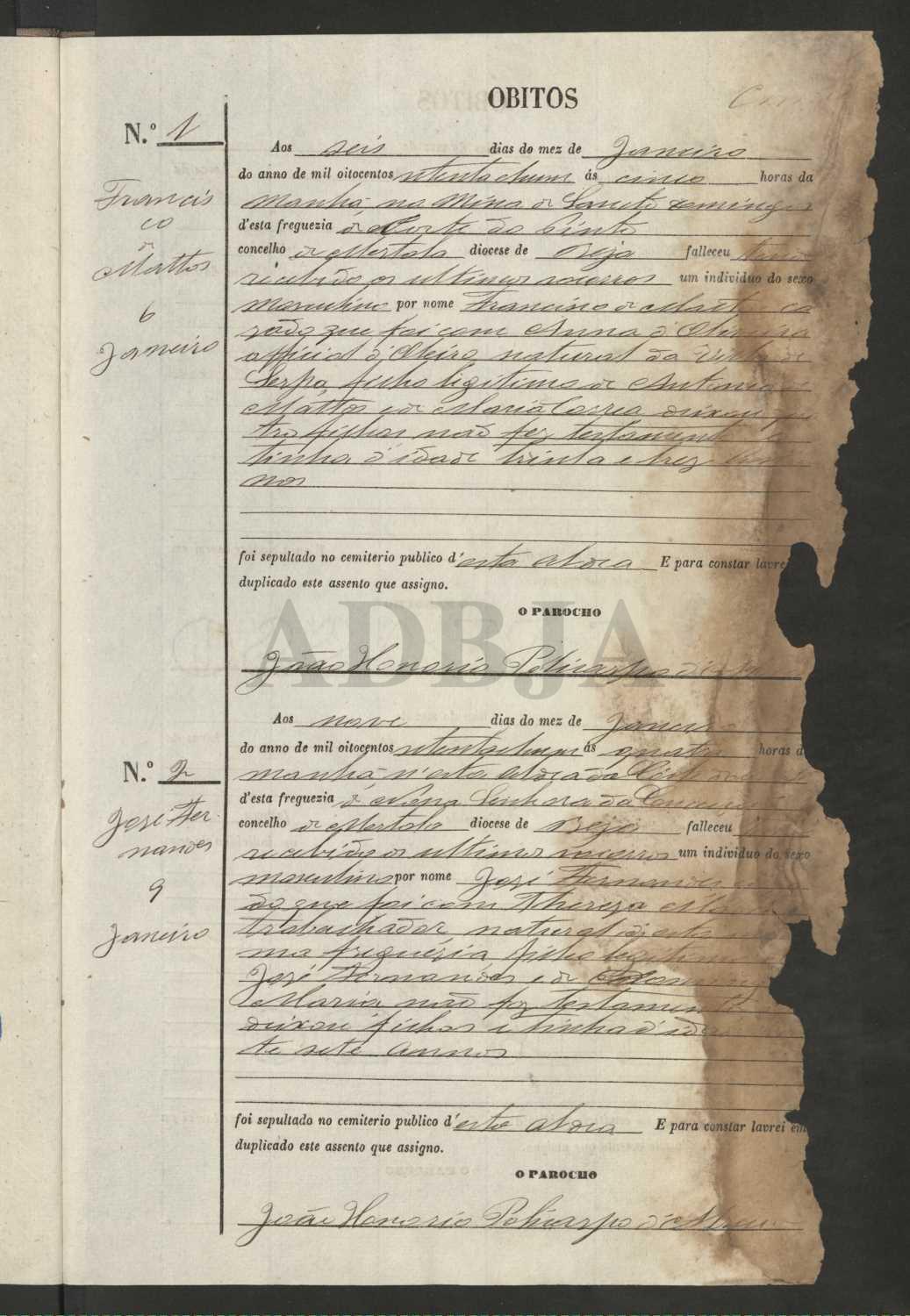 Data de Nascimento: 1837-??-??Estado Civil: Casado Nome do Cônjuge: Ana Oliveira Residência - Localidade: Mina de S. DomingosData de Falecimento: 1871-01-06Local de Falecimento: Mina de São DomingosLocal da Sepultura: Cemitério da Corte do PintoInformação Pessoal: Biografia Assento de Óbito: