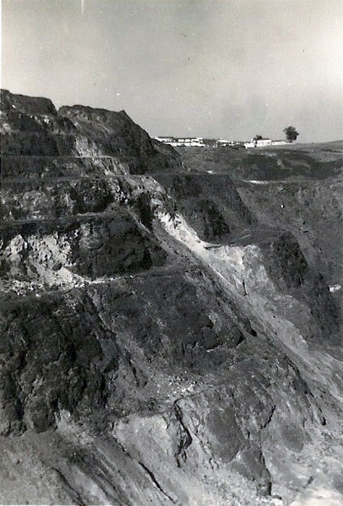 Vista para o lado norte da corta, são visíveis alguns deslizamentos.