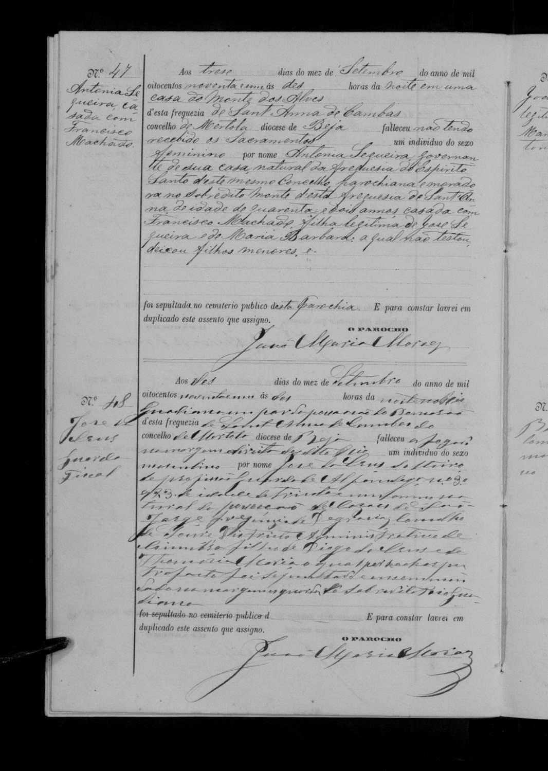 Nome do Pai: Manuel António Nome da Mãe: Teresa de Jesus Data de Falecimento: 1891-10-02Local de Falecimento: PomarãoInformação Pessoal: Biografia Assento de Óbito: