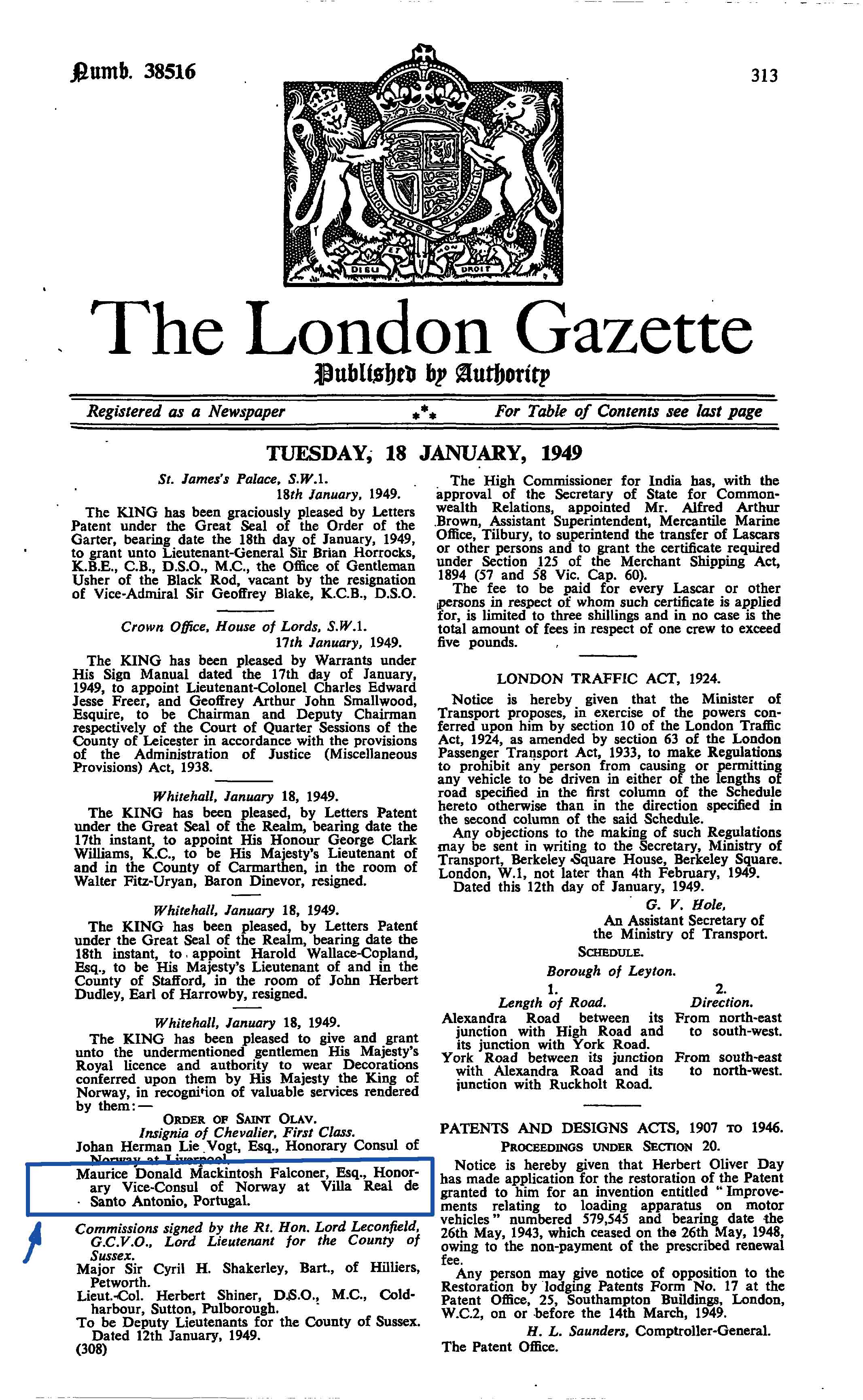 Maurice Donald Mackintosh Falconer, Esq., Honorary Vice-Consul of Norway at Villa Real de Santo Antonio, Portugal.