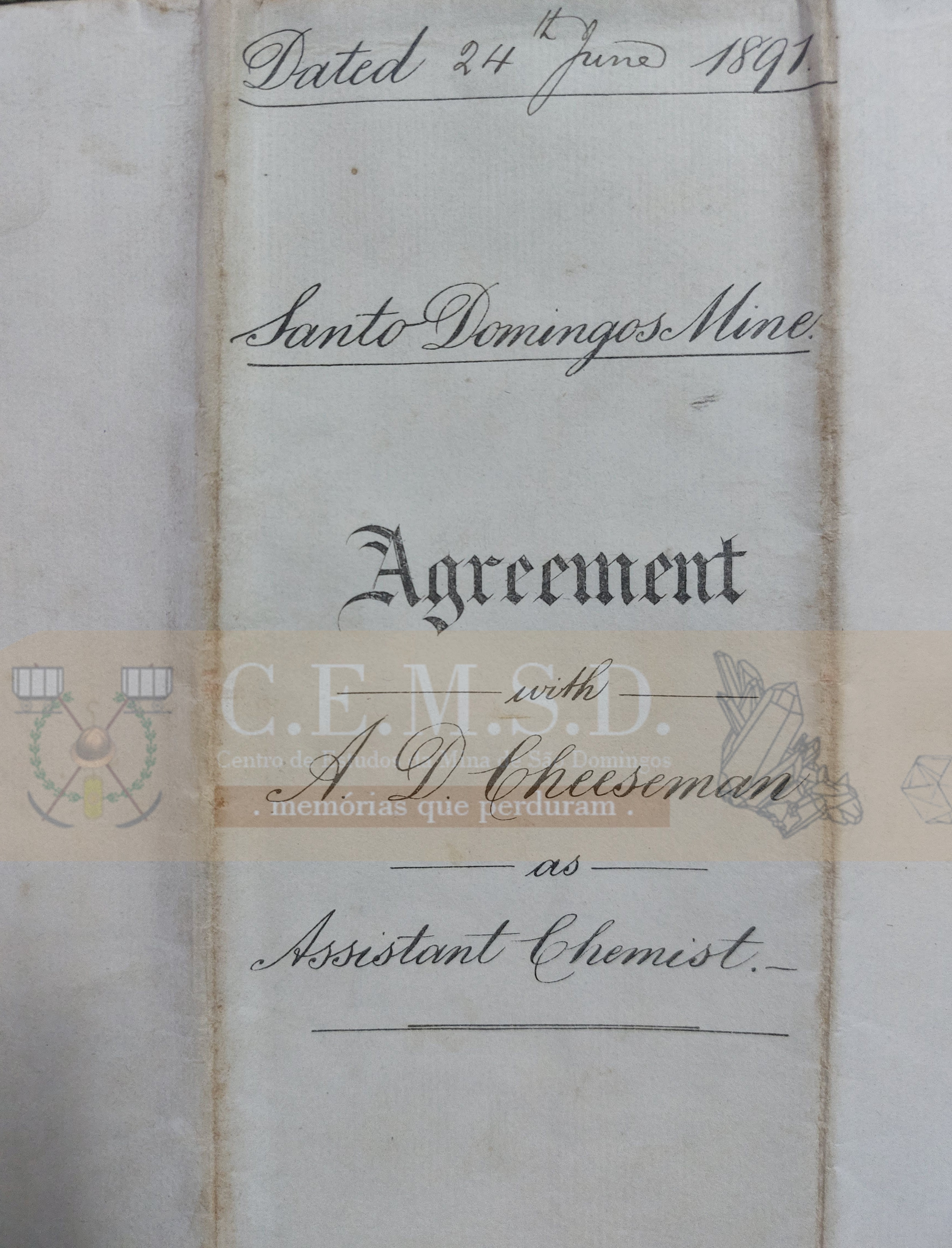 Objeto do Acordo: Alfred Davies Cheeseman concorda em trabalhar como químico assistente para a empresa em Portugal, nas minas de Santo Domingos ou quaisquer outras minas presentes ou futuras, e em conformar-se às regras e costumes da empresa.