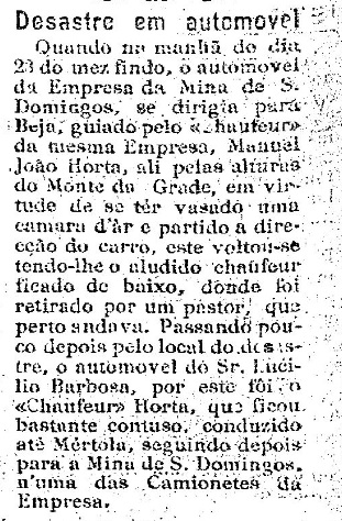 Após ter deixado a função de motorista da empresa fundou a sua propria empresa de transporte com sede em Mertola e com agencias em Vila Real de St.Antonio e Lisboa.Tinha também uma delegação na Mina de S.Domingos na Rua Funda e no ambito da sua actividade tinha um acordo com a CP para recolha de mercadorias em Beja as 3ª e 6ª feira que depois distribuia pelo concelho. Alem do serviço de transporte de mercadorias prestava também serviço de táxi.