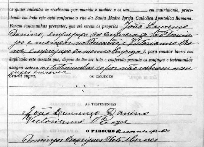 Vivia na rua da Junqueira em Lisboa quando faleceu. Deixou 7 filhos cinco dos quais menores. Nome espanhol:Juan Lorenzo Danino Morello (Familia de Cádiz).Tinham quinta na Trafaria e tiveram 6 filhos e dois netos.