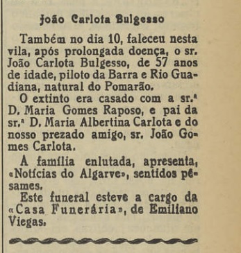 Admitido na Corporação de pilotos de VRSA em 16 de Agosto de 1928.